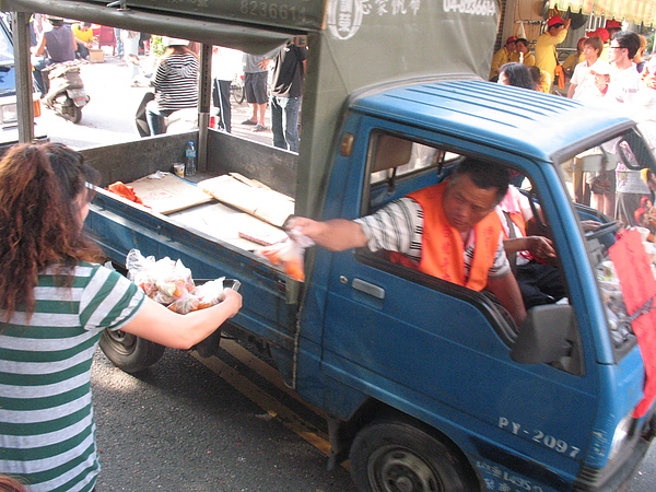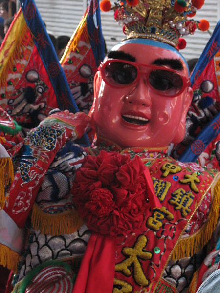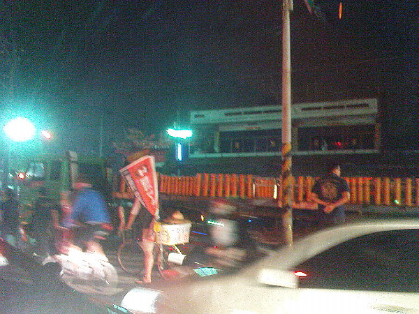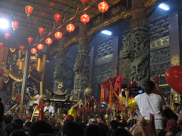 入夜,當媽祖主轎進了奠安宮,繞境相關人員稍微休息的片刻,則輪到萬人夜市登場。夜市以奠安宮為中心繞一個四方形,我們從奠安宮前出發,打彈子射氣球吃熱狗喝飲料所有在夜市能幹的事都幹完了,因為人潮,因為攤位,使得我們仍深陷於茫茫人海之中。零九年夏天在羅東夜市曾經領教過一次深陷人海的感覺,但這次是第一次體會到什麼叫人海加三級的茫茫人海或說萬頭鑽動。那種與旁人彷彿用矽利康完全緊密相黏的感覺,當下,只想拿鐵鎚一個一個給他,或說是一整個想大聲罵幹想當人肉炸彈自爆的奇摩子不好。那一刻,我很明白為什麼別人總對我說:長得高,上面空氣新鮮唄!