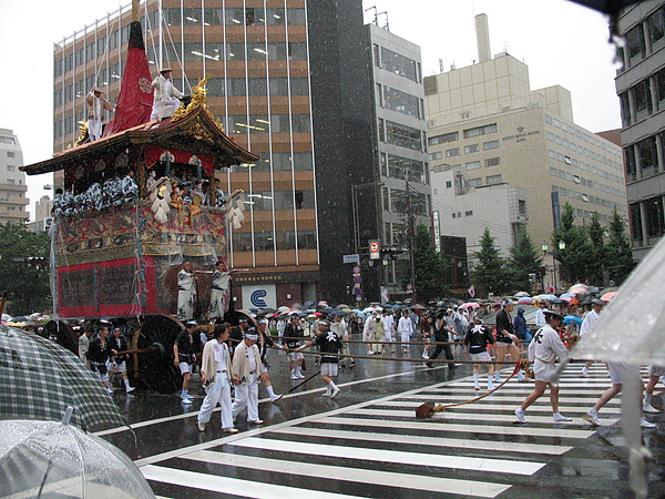 在北斗鎮的一隅望著遠方即將迎面而來的陣頭,亮麗而多彩的神轎,鑼鼓喧天的情景,多年前京都盛夏祇園祭的回憶,在市役所轉角處撐著傘毫不畏懼傾盆大雨看著祭典的點點滴滴一一浮現腦海,噢!還真有那麼點神似。